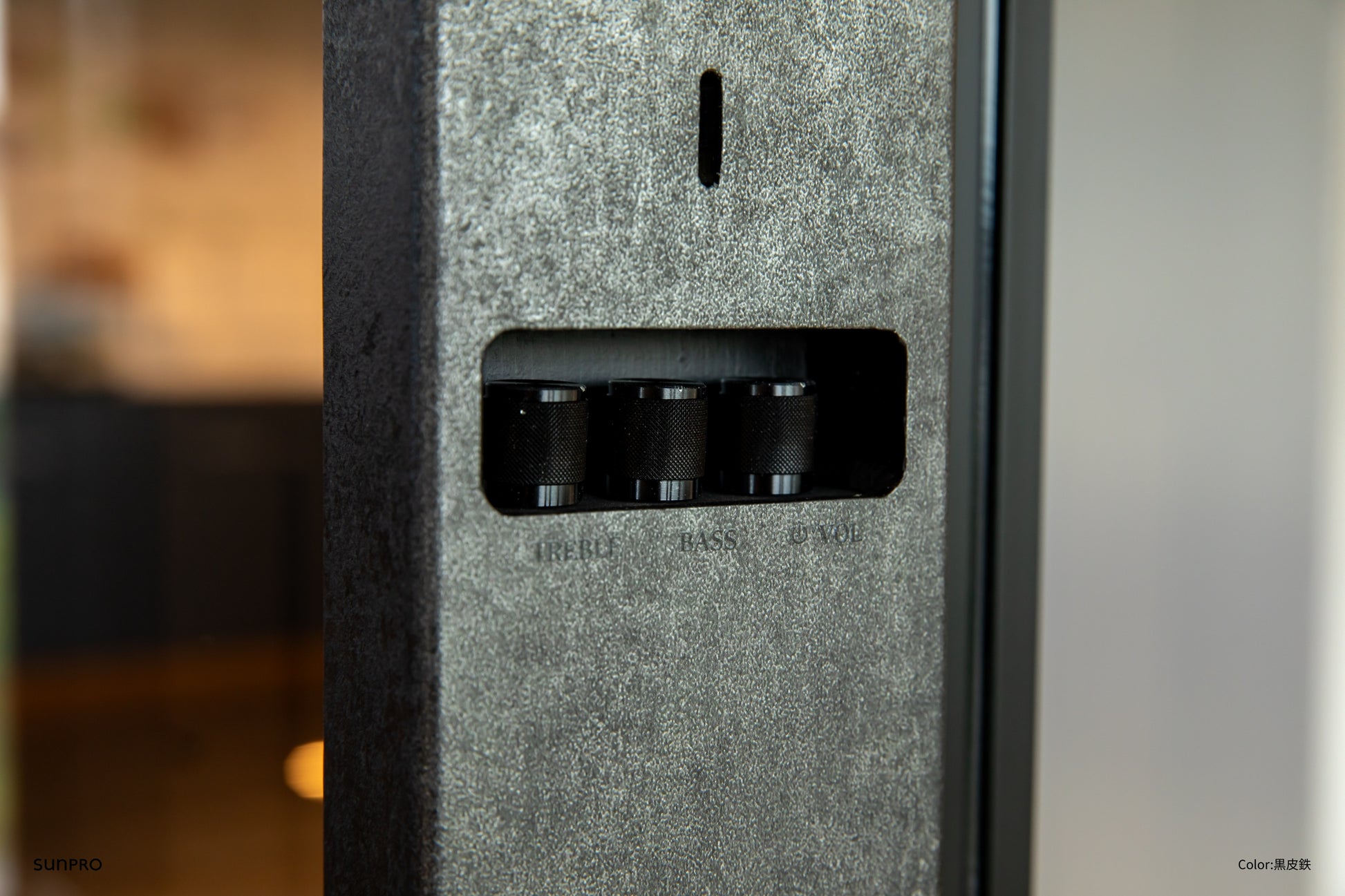 視覚的な調和: スピーカー本体の厚みは40㎜。そして、幅は89㎜。今までに無い究極のスリム設計で、壁面と一体化する縦型デザインです。大型スクリーンや薄型テレビと並べても違和感がなく、空間の美しさを損ないません。