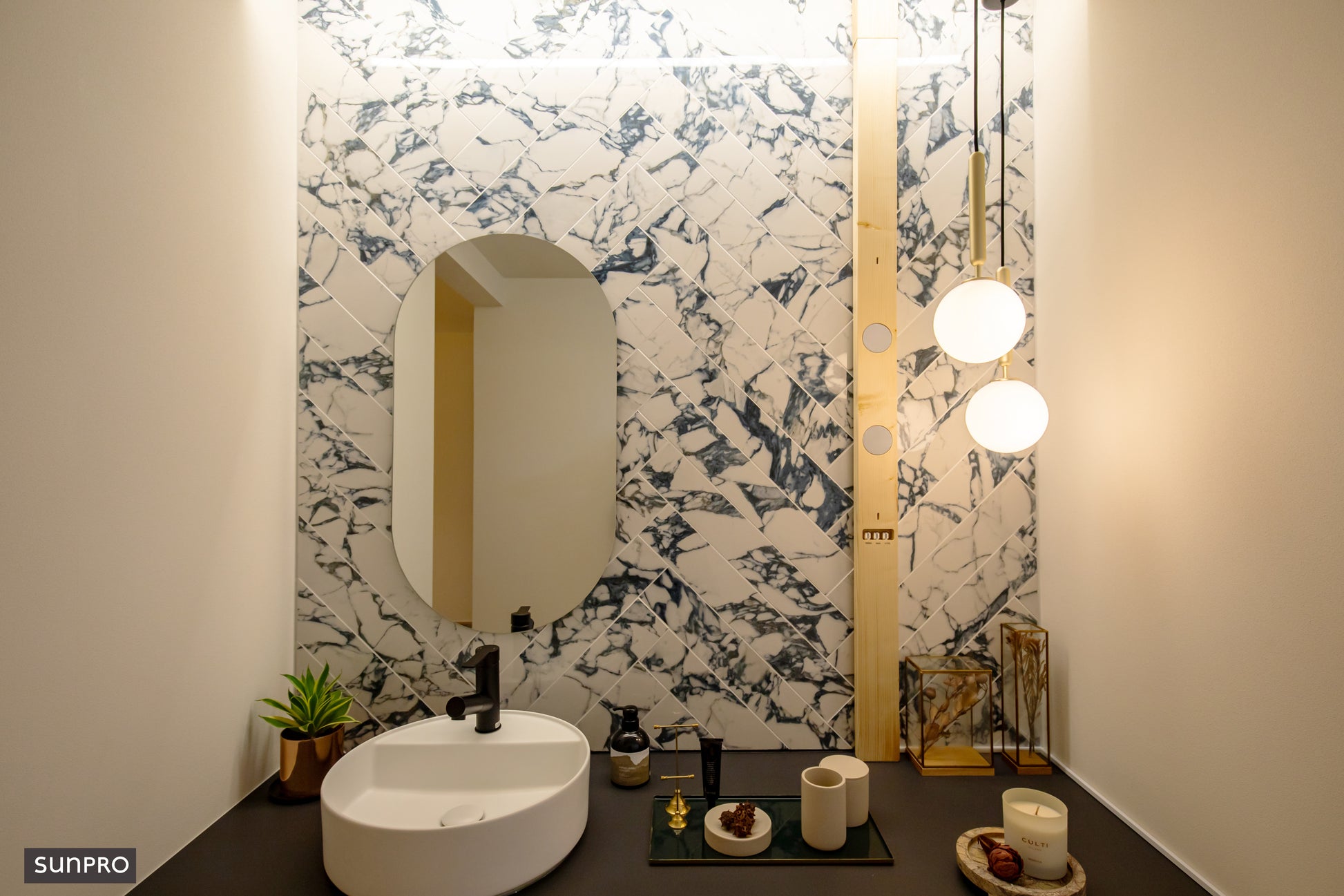視覚的な調和: スピーカー本体の厚みは40㎜。そして、幅は89㎜。今までに無い究極のスリム設計で、壁面と一体化する縦型デザインです。大型スクリーンや薄型テレビと並べても違和感がなく、空間の美しさを損ないません。