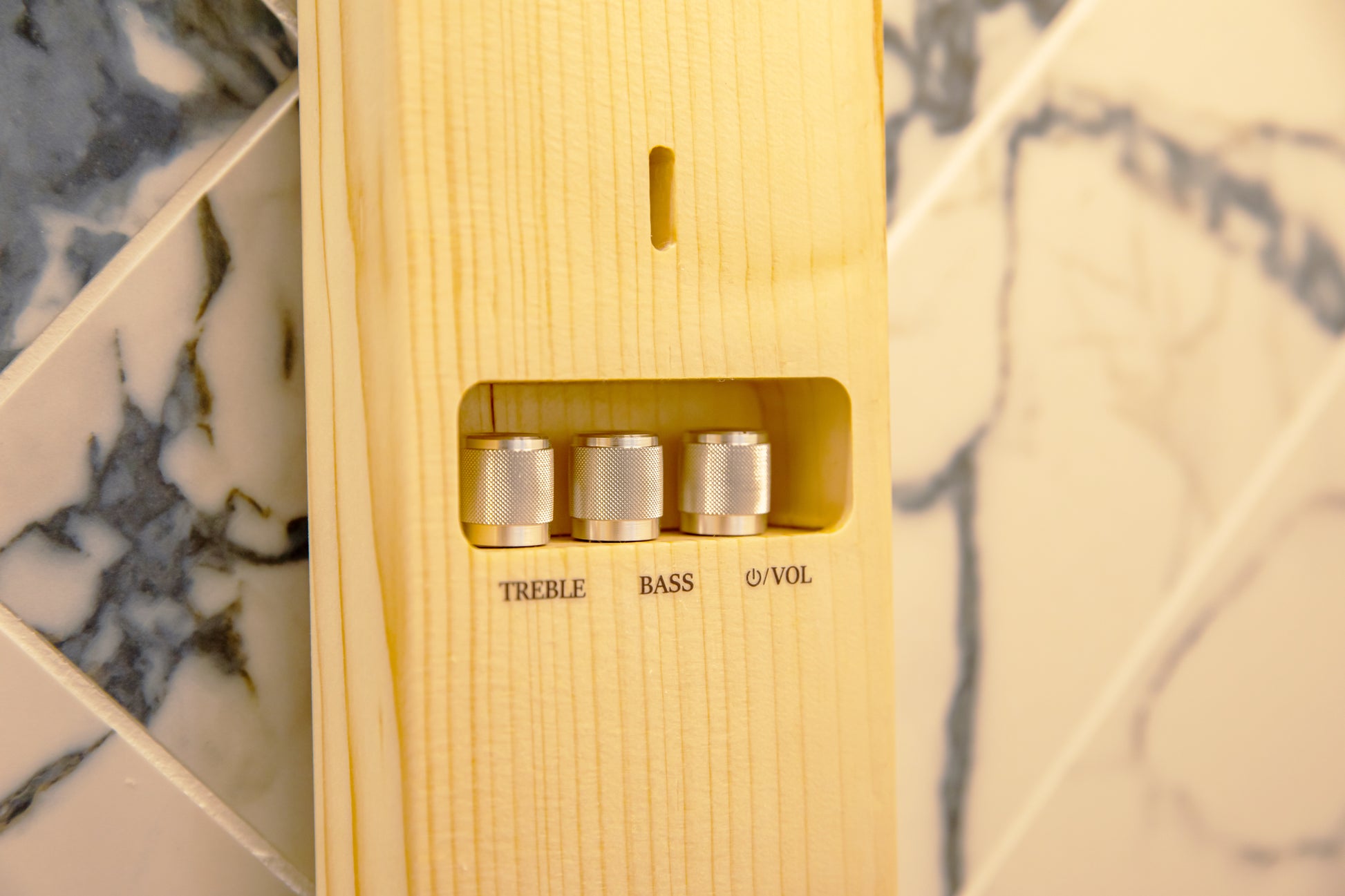 直感的な操作: 本体側面のTREBLE / BASS / VOLのシンプルなノブで、お好みの音質に調整可能です。